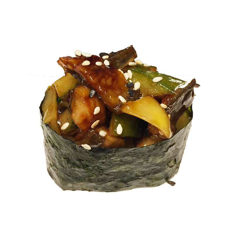 Paling, Komkommer, Gefrituurde garnaal & Sesam