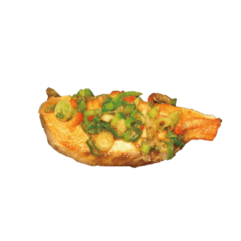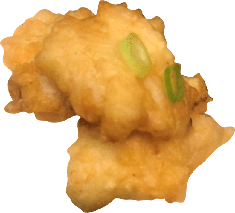 Gefrituurde kibbeling met lente ui en knoflooksaus
