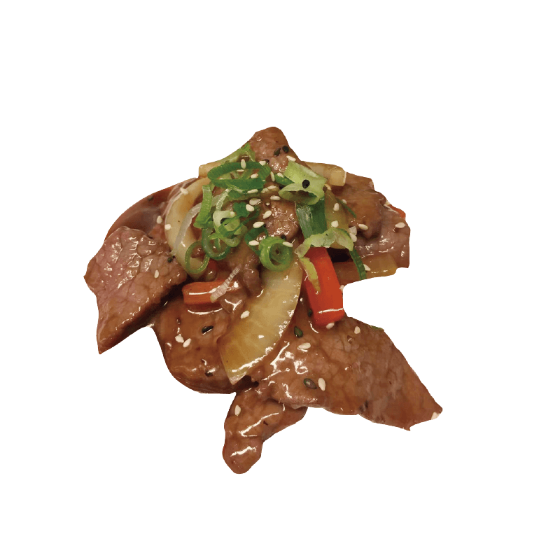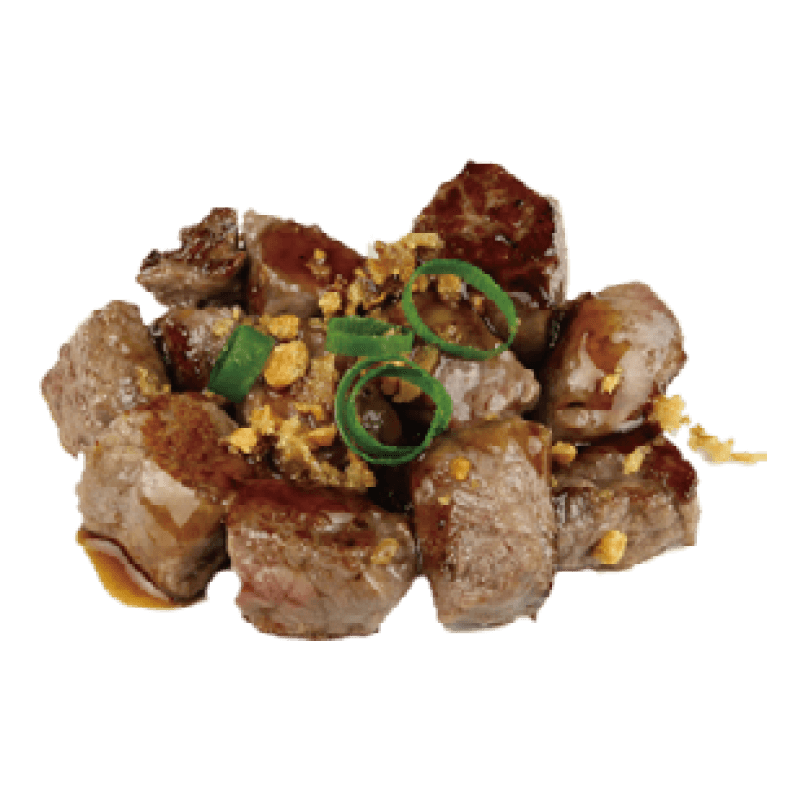 Gegrilde rundvlees blokjes & gebakken uitjes