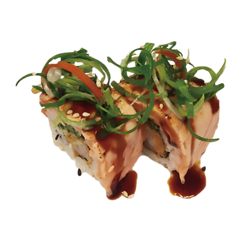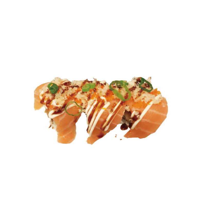 Surimi krab, Avocado, Komkommer, Viskuit & Geflambeerde zalm